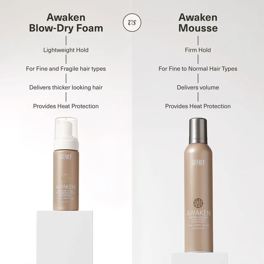 Styling mousse with built in protein repair for fine hair. Strengthen, thicken and protect fine and fragile hair while heat styling.